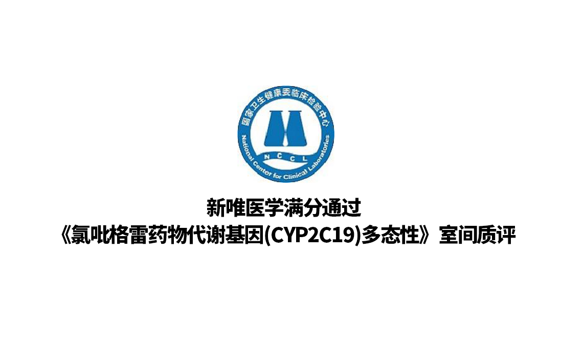 喜訊 ▏新唯醫學滿分通過《氯吡格雷藥物代謝基因(CYP2C19)多態性》室間質評