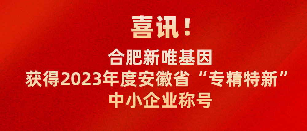 喜訊|合肥新唯基因獲得2023年度安徽省“專精特新”中小企業稱號
